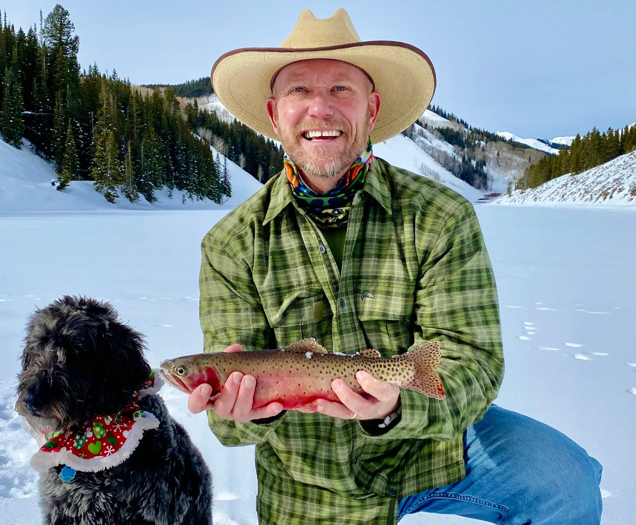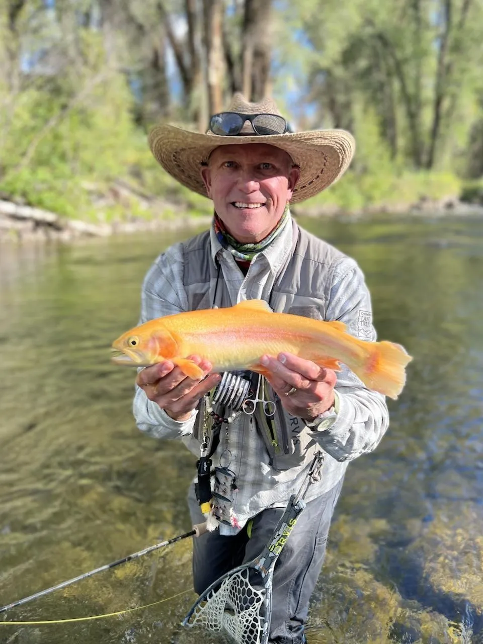 The trout I am holding in the photo is a very rare Palomino trout caught in the summer of 2022 on the East River here in Crested Butte.